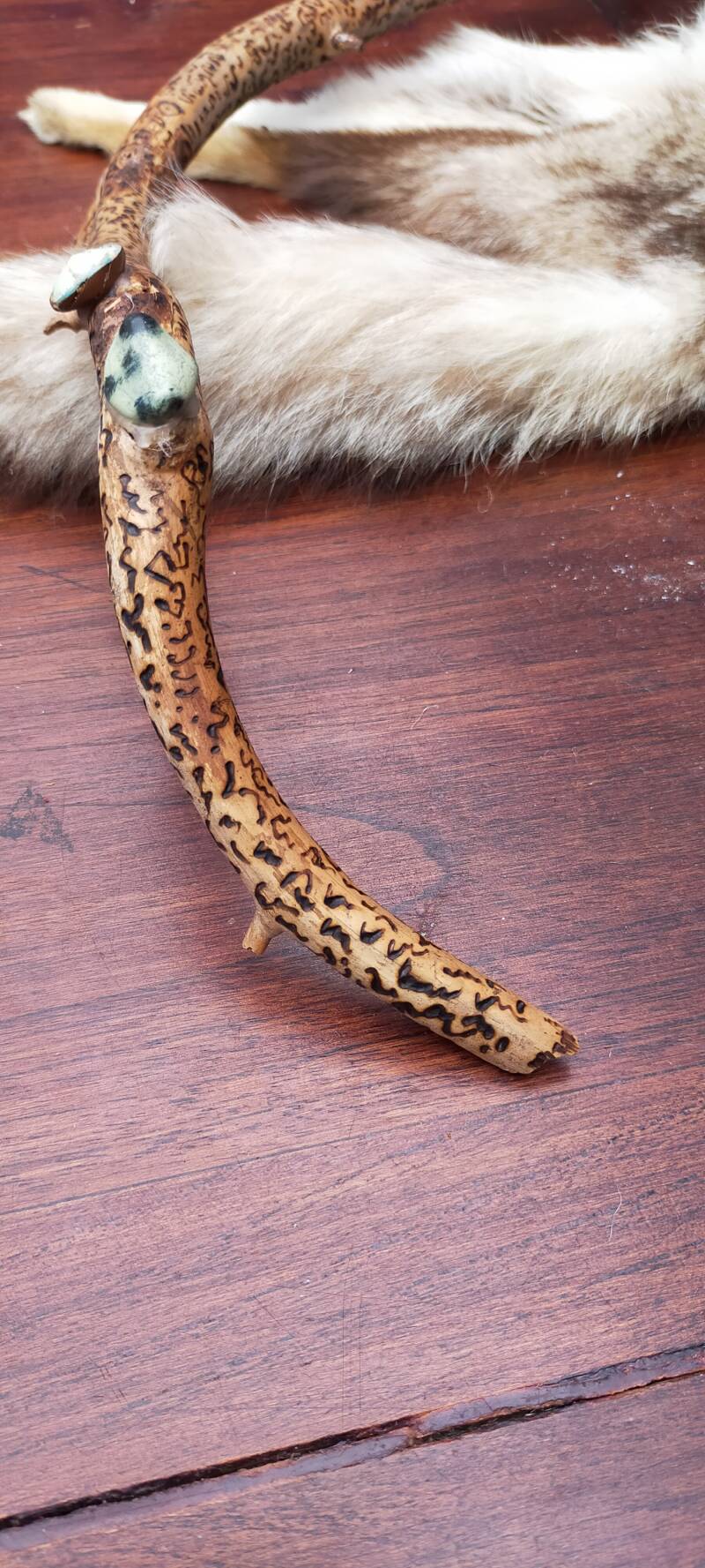 Van de week wilde ik een krachtstok maken. En voelde de behoefte om daar het brandapparaat bij te gebruiken. Het resultaat is een zeer krachtige stok vol met lichttaal. Ook deze stroom kwam als vanzelf en was niet tegen te houden.