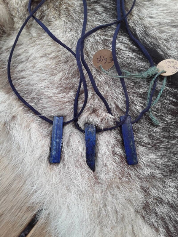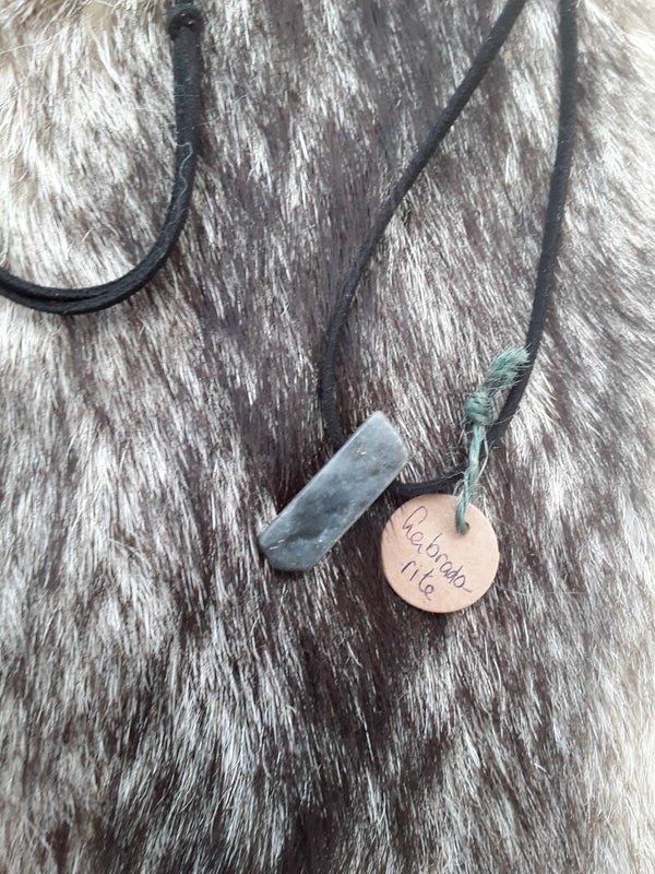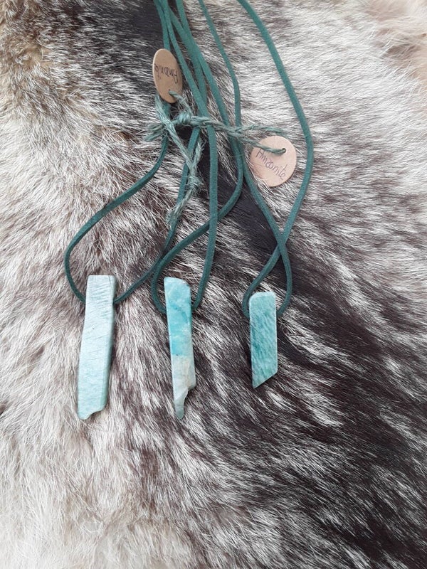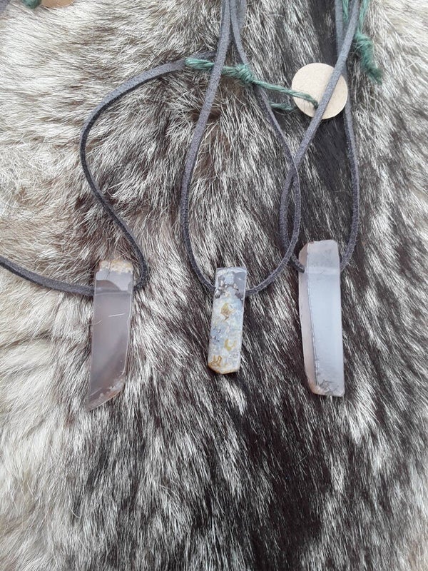 De ketting heeft een wat ruwere gepolijste steen aan koort an suedine.