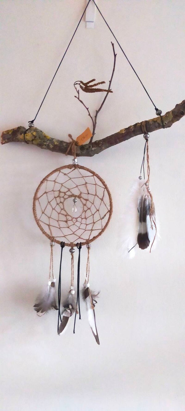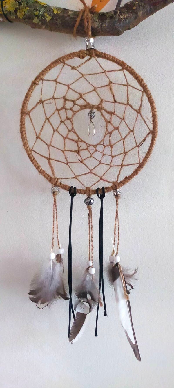 Dromenvanger met mooi natuurlijk materiaal. 20 cm. in doorsnede.